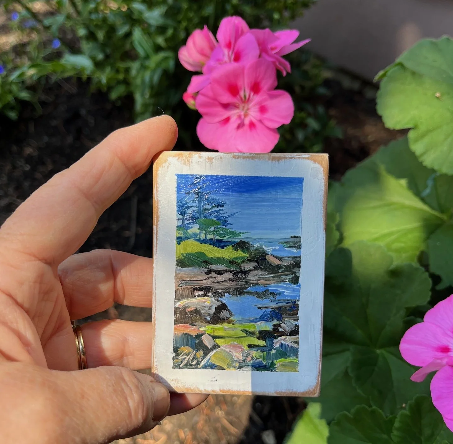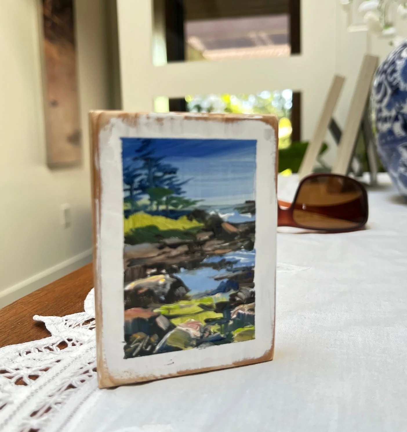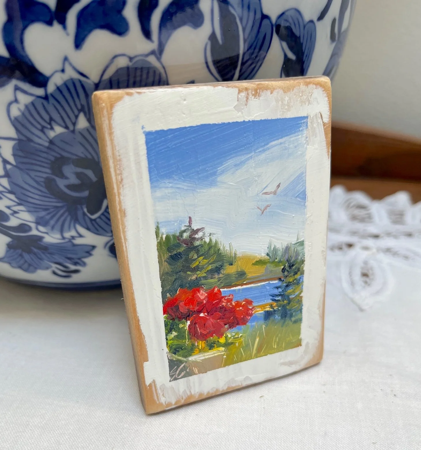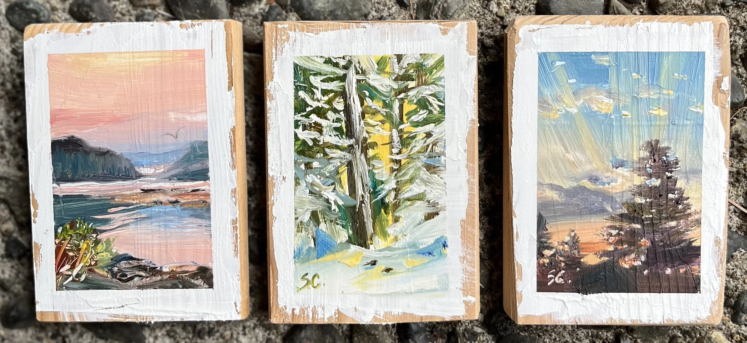 original Mini paintings Tangled Garden, 3.5 x 2.5 inch, original mini painting $45.00 Poppies by the Sea, 3.5 x 2.5", oil on reclaimed cedar, original miniature painting $45.00 Aerial Sunset, 3.5x2.5 inches, oil on reclaimed wood $45.00 Beach Path, 3.5x2.5" oil on reclaimed cedar $45.00 Sea Cider Farm View, 3 1/2 x 2 1/2", original oil on reclaimed cedar $45.00 Ucluelet Evening, 3 1/2 x 2 1/2", original miniature oil painting $45.00 SOLD Picnic at Tofino, 3.5 x 2.5" original oil miniature on reclaimed cedar $45.00 SOLD Kennedy River, 3.5 x 2.5", original oil miniature on reclaimed cedar $45.00 SOLD